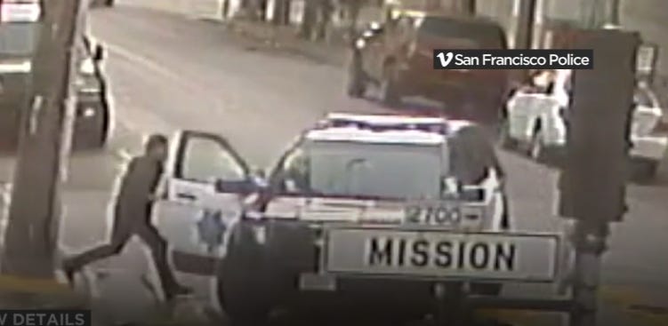 Two San Francisco police officers were investigating reports of burglary and vandalism by a Hispanic male when they spotted a suspect who matched the suspect’s description walking down a street.
